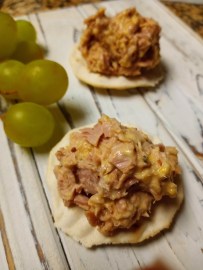 - Spoon mixture onto crackers. Microwave 20 seconds and repeat until cheddar is melted slightly.